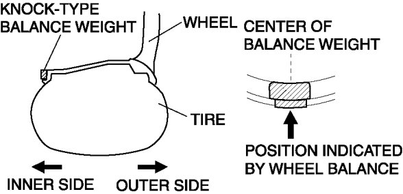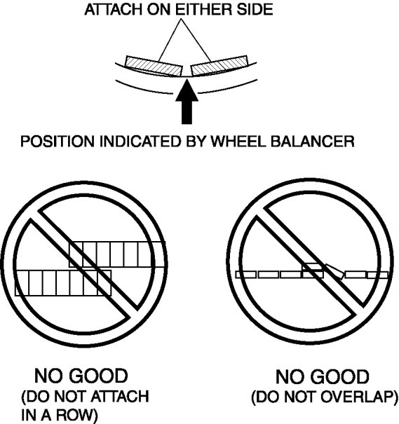 6. If attaching two balance weights, position them so that each is on either side of the position indicated by the wheel balancer.