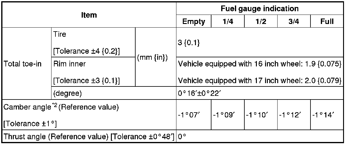 Rear wheel alignment (Unloaded)*1