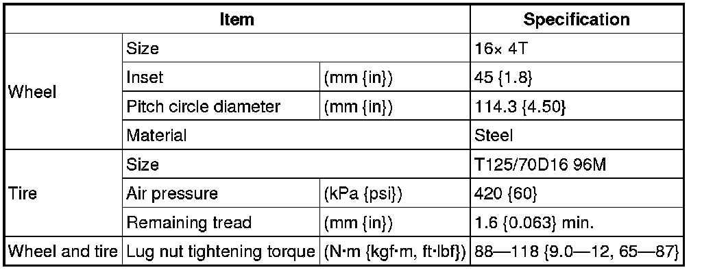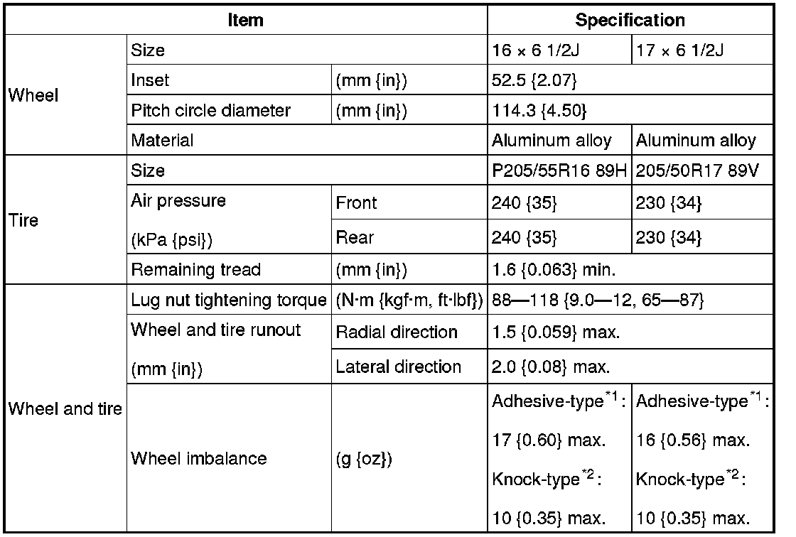 WHEEL AND TIRE SPECIFICATIONStandard tire and wheel *1