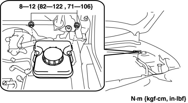 c. Remove the No.1 reserve tank installation nuts.