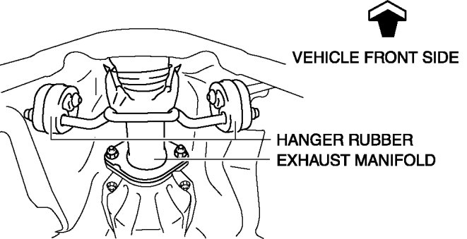 h. Disconnect the exhaust manifold from the hanger rubber and set it out of the way.