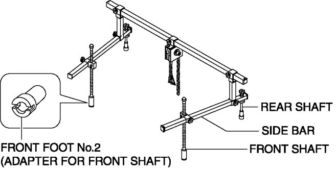a. Install the front foot No.2 to the left and right front shafts of the SST.