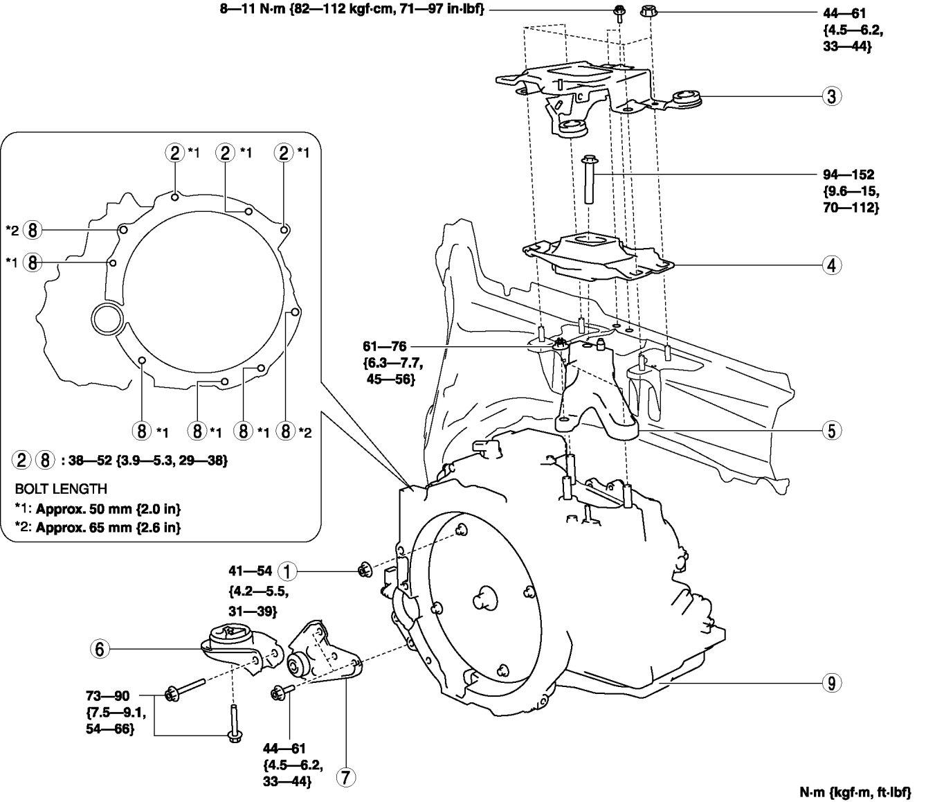 - 38-52 Nm {3.9-5.3 kgf-m, 29-38 ft-lbf}
