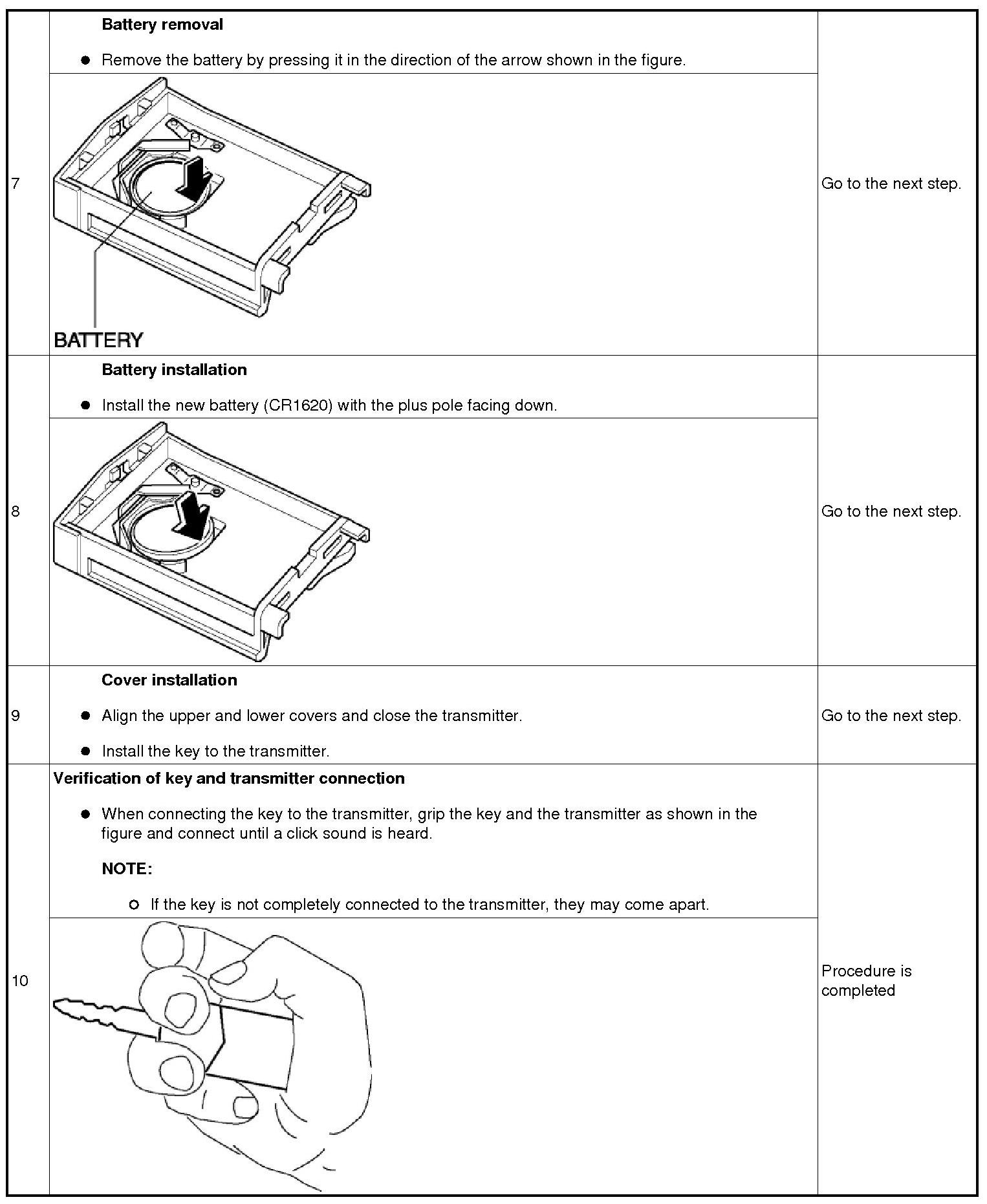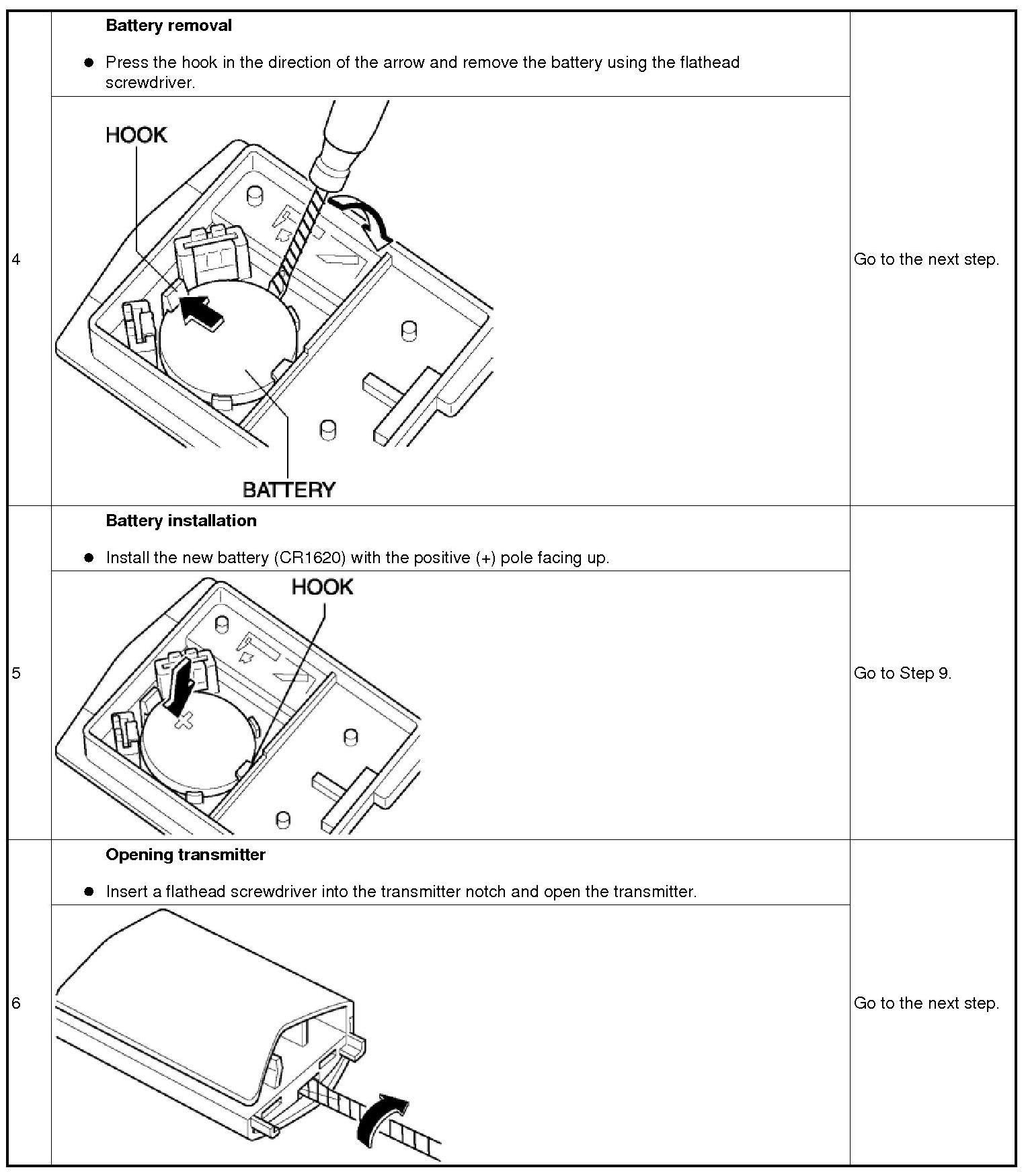 TRANSMITTER BATTERY REPLACEMENT [KEYLESS ENTRY SYSTEM]Battery specification -