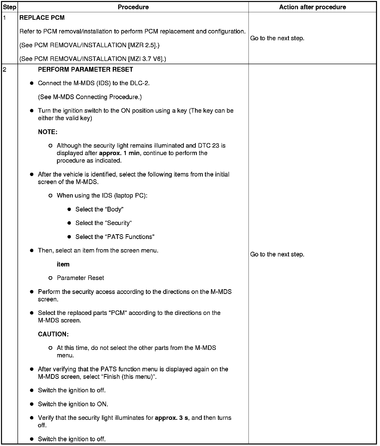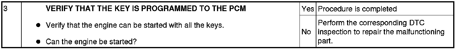 Immobilizer System-Related Parts Service and Programming Procedure Table