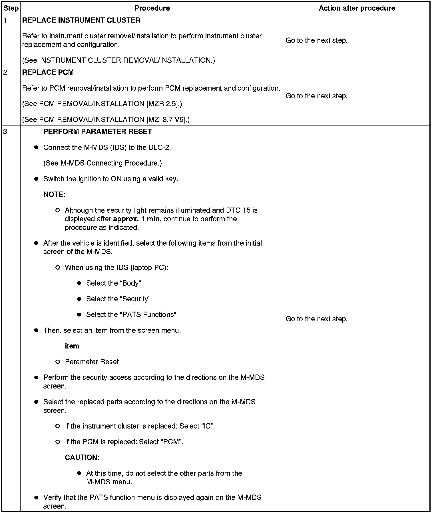 No.6 Programming Procedure Due to Simultaneous Replacement of Immobilizer System-related Parts (PCM and Instrument Cluster)
