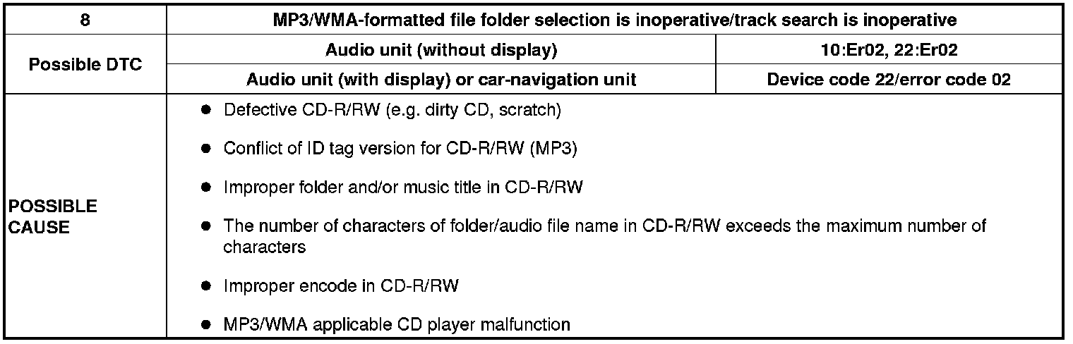 No. 8 MP3/WMA-Formatted File Folder Selection Is Inoperative/Track Search Is Inoperative