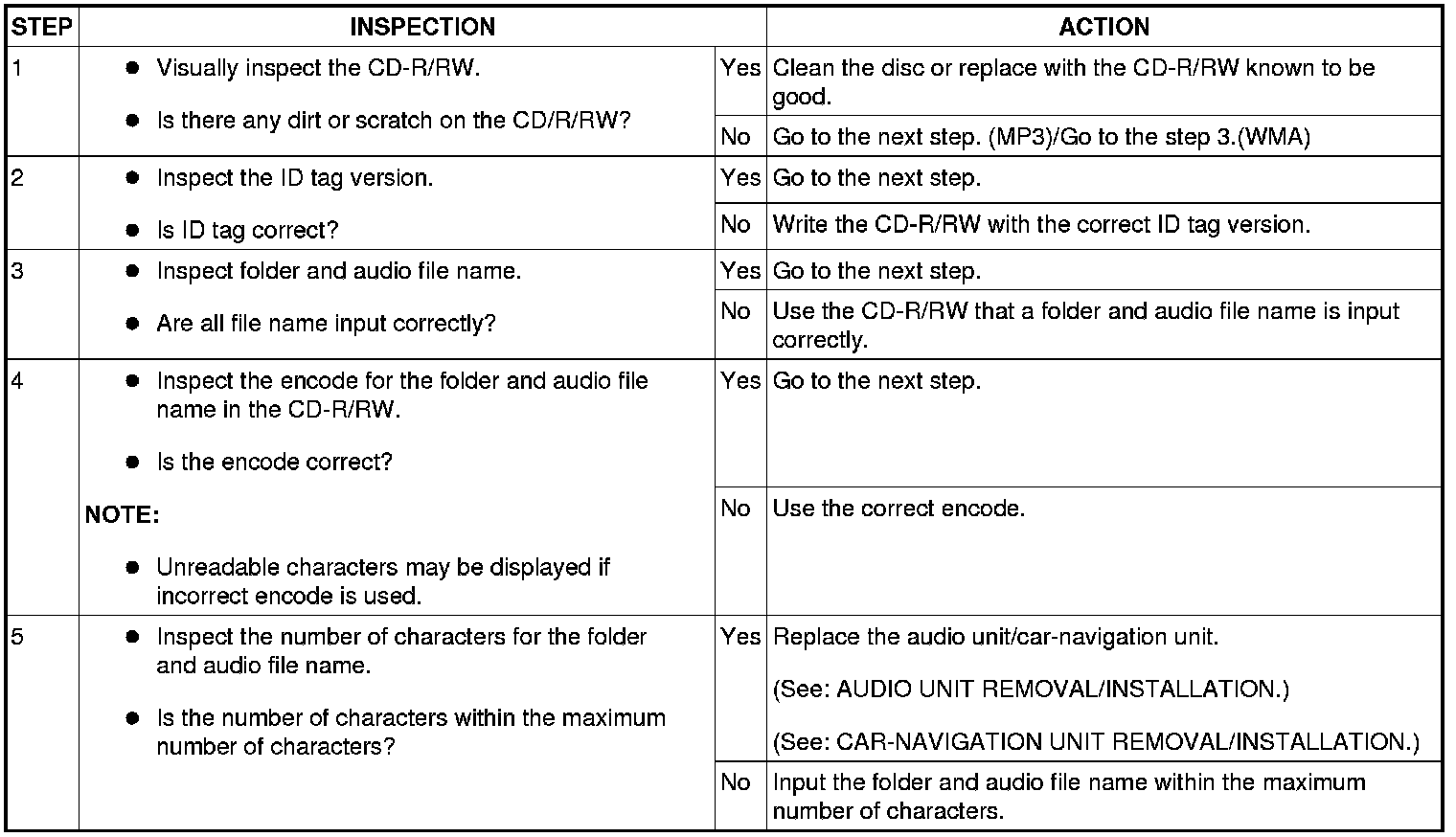 NO.8 MP3/WMA-FORMATTED FILE FOLDER SELECTION IS INOPERATIVE/TRACK SEARCH IS INOPERATIVE [CD PLAYER/CHANGER]