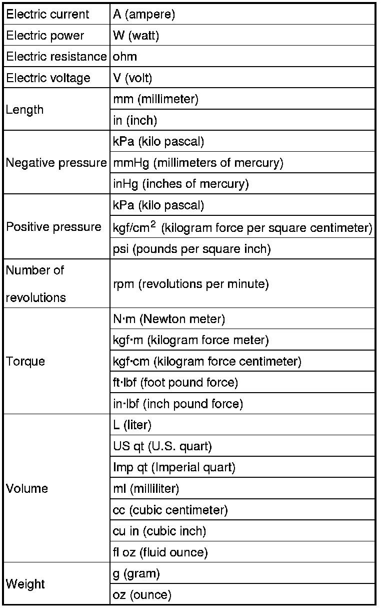 - All numerical values in this information are based on SI units. Numbers shown in conventional units are converted from these values.