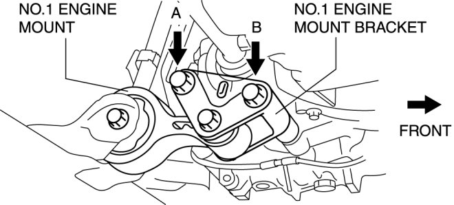 3. Temporarily tighten the No.1 engine mount bolts A and B.