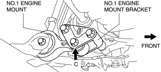 5. Tighten the No.1 engine mount bolt C.