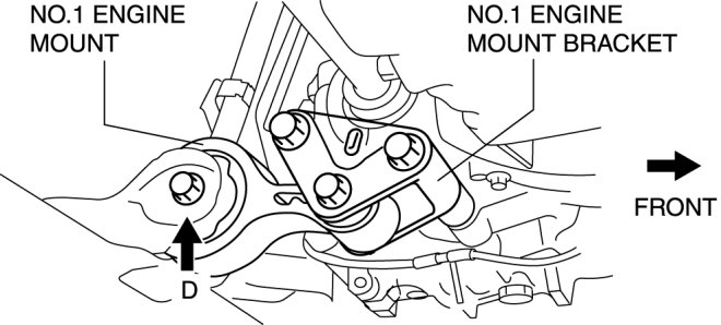 6. Tighten the No.1 engine mount bolt D.