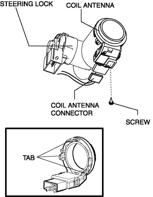 Detach the coil antenna hooks and remove the coil antenna from the steering lock.