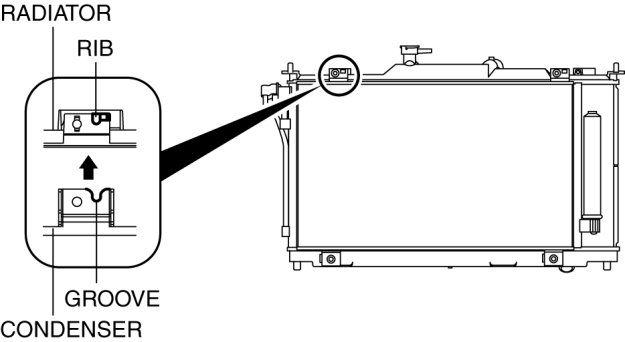 1. Align the bracket groove of the condenser to the radiator positioning rib.