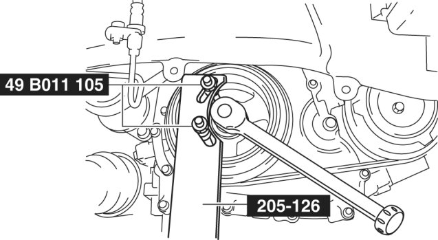 11. Loosen the water pump pulley bolts and remove the drive belt. Service and Repair