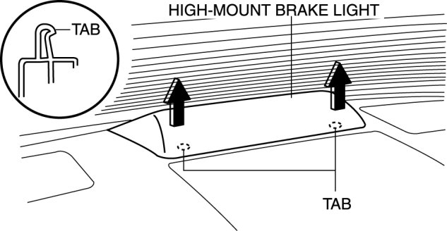 4. Lift up the high-mount brake light in the direction of the arrow and detach the tabs.
