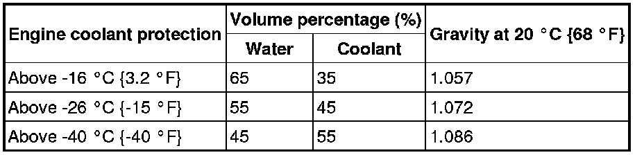 1 Use engine coolant at a concentration that meets the environmental conditions in which the vehicle is driven, otherwise engine damage could occur.