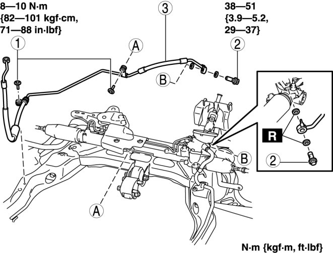 POWER STEERING FLUID LINE COMPONENT REMOVAL/INSTALLATION [MZR 2.5]