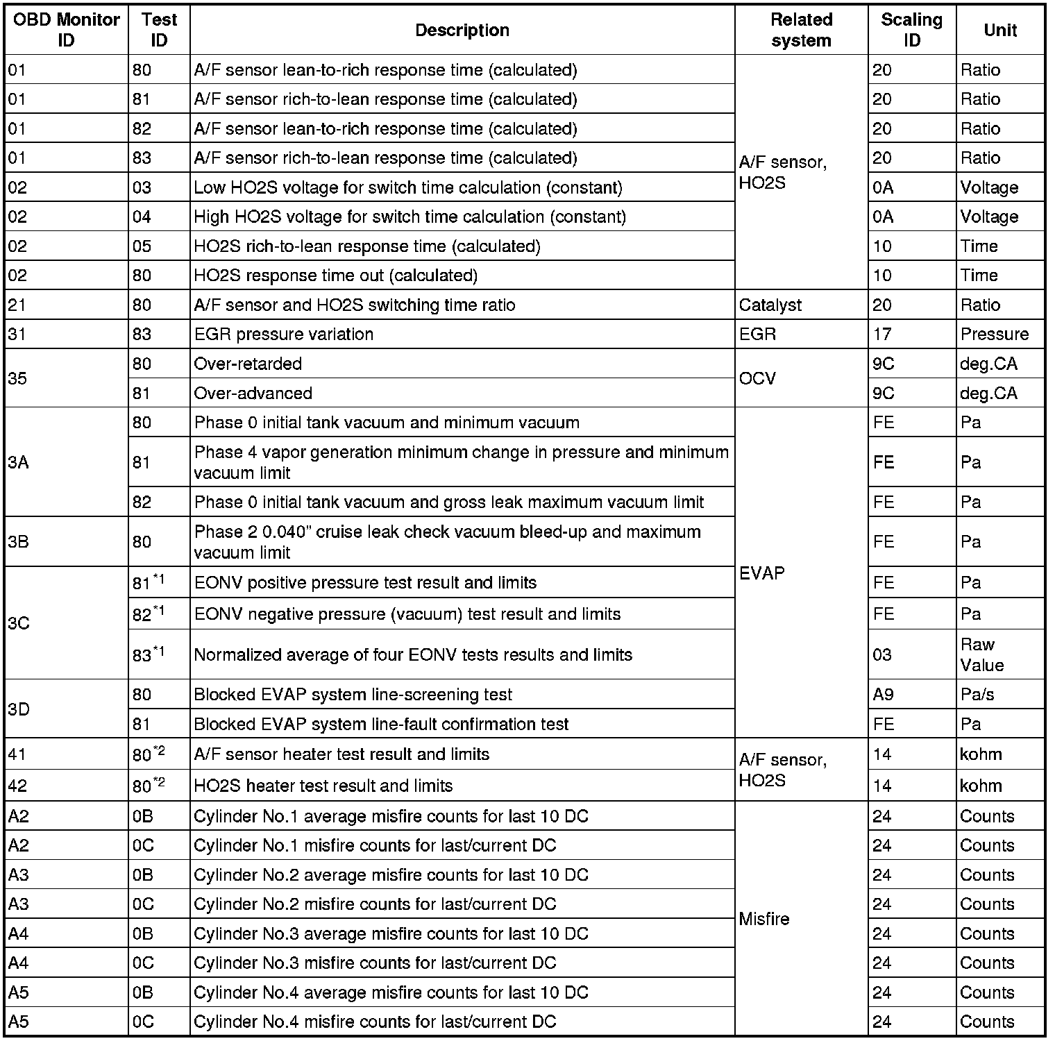 The purpose of this test mode is to confirm the result of OBD-II monitor diagnostic test results. The result values stored when particular monitor is completed are displayed. If the monitor is not completed, initial value is displayed.