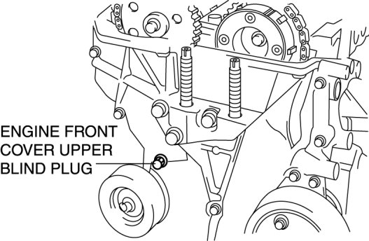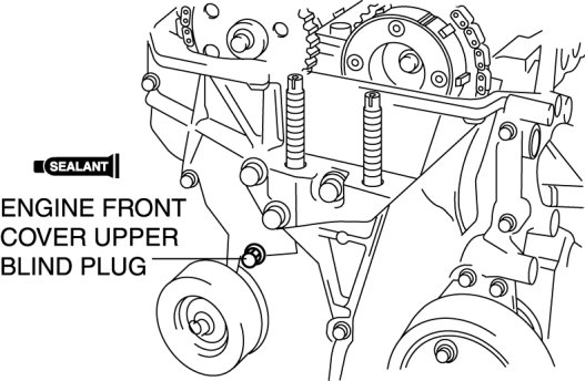 - Install the engine front cover upper blind plug before the applied silicone sealant starts to harden.