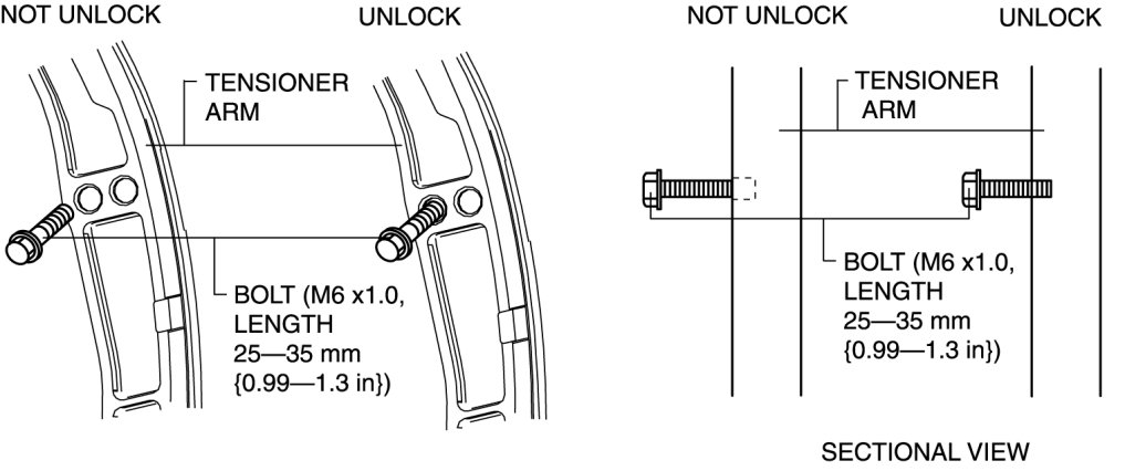 - If the tensioner arm cannot be secured, return the bolt to its original position and repeat the procedure from Step (3).