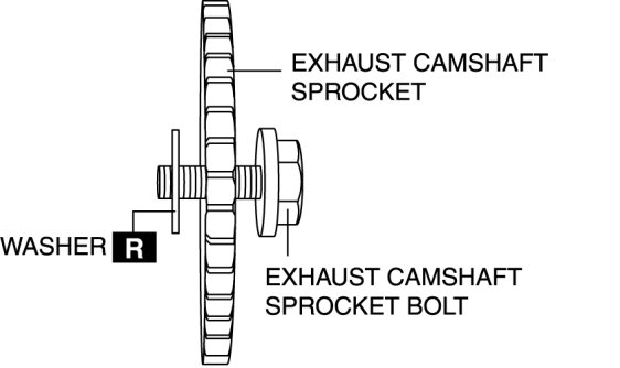 20. Remove the exhaust camshaft sprocket bolt, exhaust camshaft sprocket, and washer as a single unit.