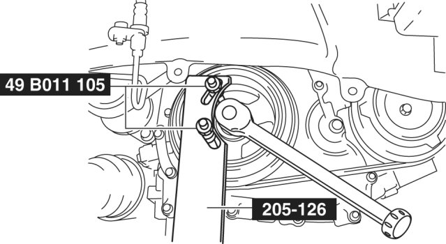 To position the crankshaft pulley, temporarily tighten it and, using a suitable bolt (M6 X 1.0), fix the crankshaft pulley to the engine front cover.