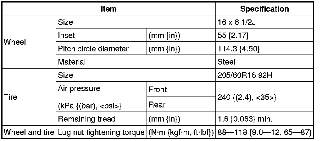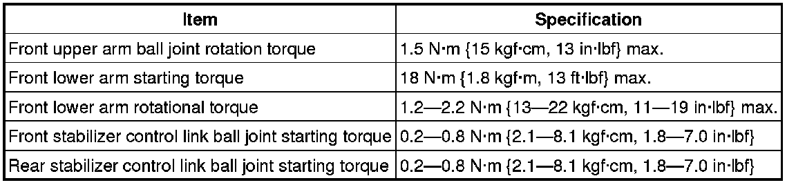 Suspension Technical Data [General (L.H.D.) Specs.]