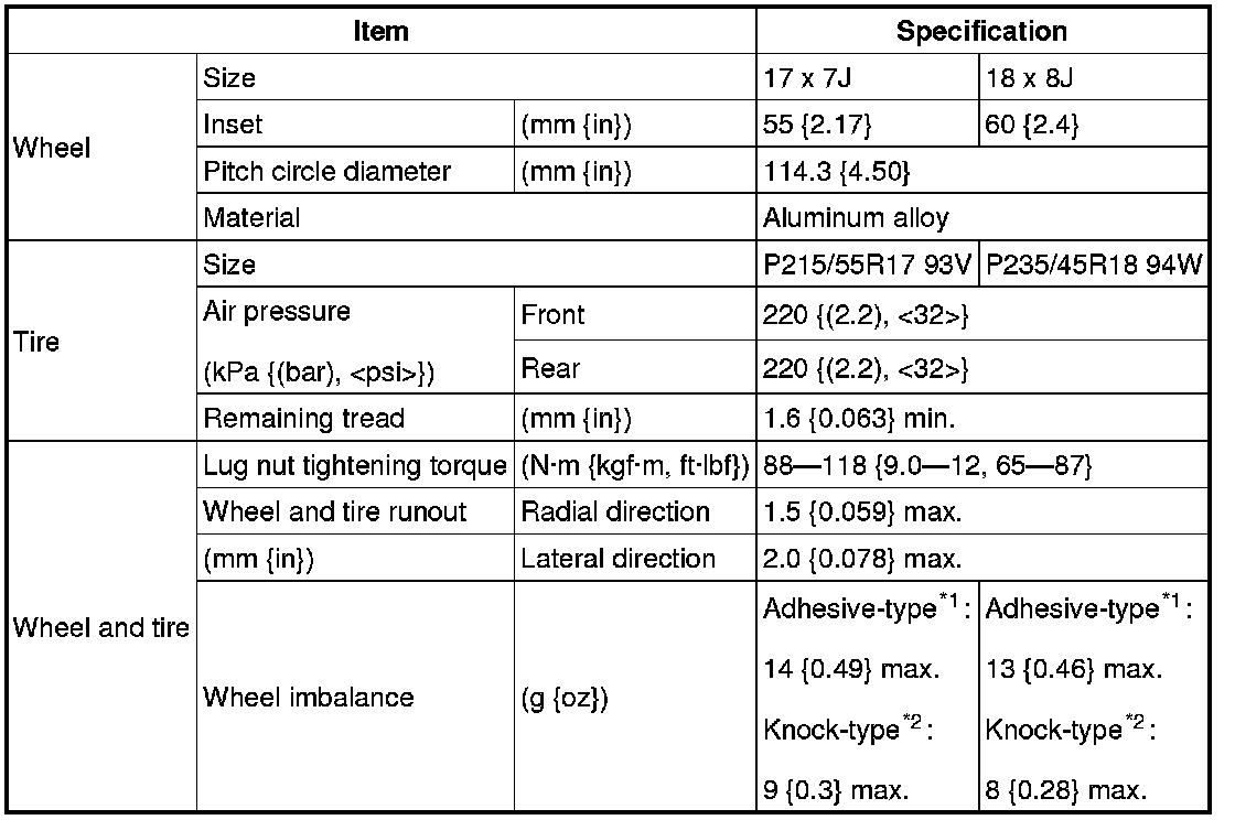 One balance weight: 60 g {2.12 oz} max. If the total weight exceeds 100 g {3.53 oz} on one side, rebalance after moving the tire around on the rim. Do not use three or more balance weights.