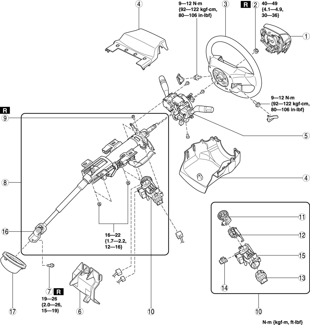 STEERING WHEEL AND COLUMN REMOVAL/INSTALLATION [WITHOUT ADVANCED KEYLESS ENTRY AND PUSH BUTTON START SYSTEM]