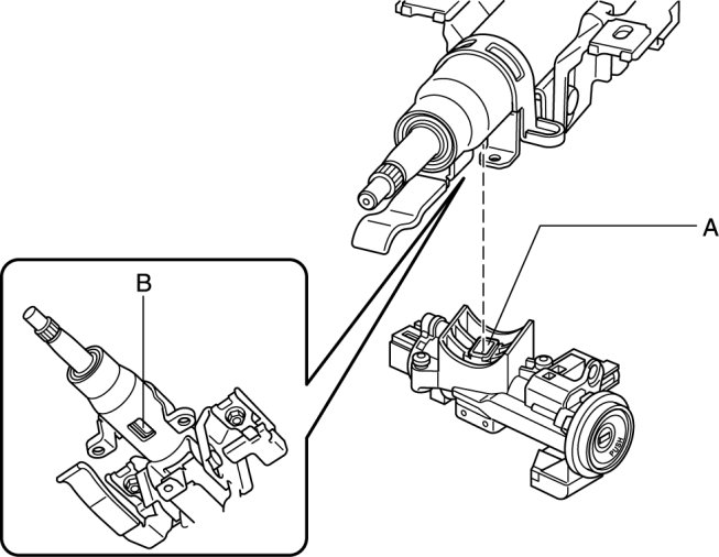 1. Assemble section A of the steering lock component to the section B of the steering shaft.