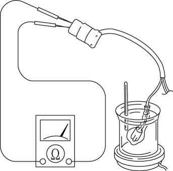 1. Place the TFT sensor and a thermometer in ATF as shown, and heat the ATF gradually.