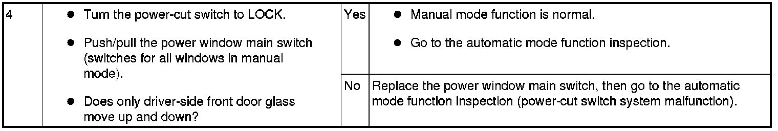 - Perform the following inspection for the power window main switch and the power window subswitches for each window.