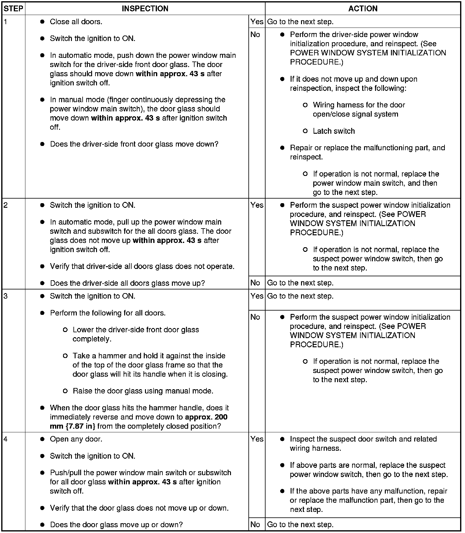 BASIC POWER WINDOW SYSTEM INSPECTION [POWER WINDOW SYSTEMS (AUTO-OPEN/CLOSE FUNCTION)]