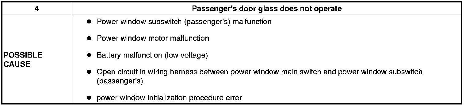 No.4 PASSENGER DOOR GLASS DOES NOT OPERATE [POWER WINDOW SYSTEM (EXTERIOR OPEN FUNCTION)]