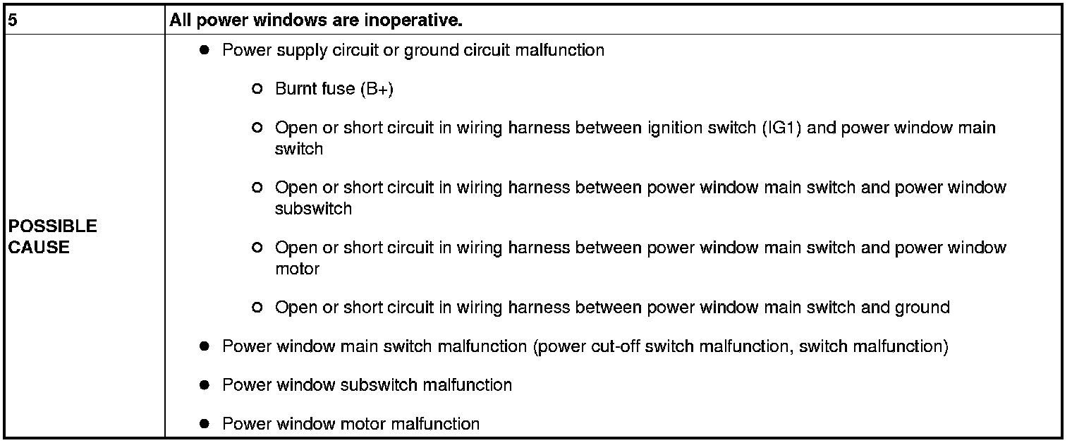 No.5 ALL POWER WINDOWS ARE INOPERATIVE [POWER WINDOW SYSTEMS (WITHOUT EXTERIOR OPEN FUNCTION)]