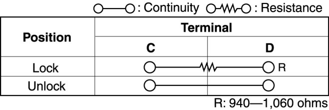 - If not as indicated in the table, replace the door lock switch.