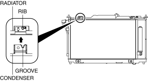 1. Align the bracket groove of the condenser to the radiator positioning rib.