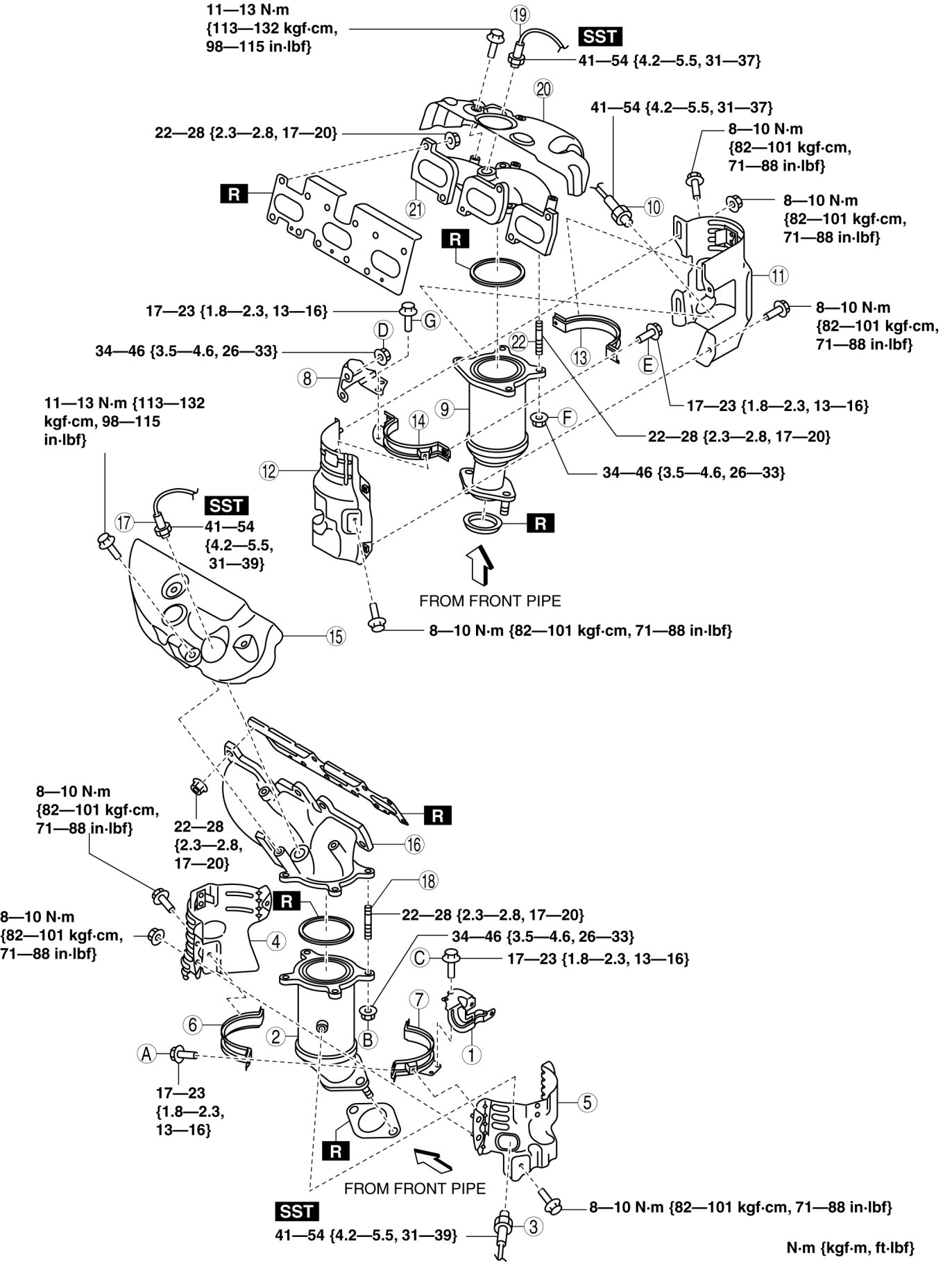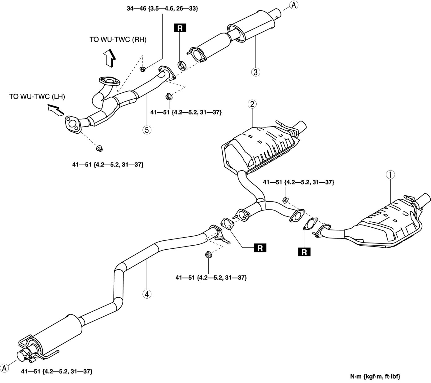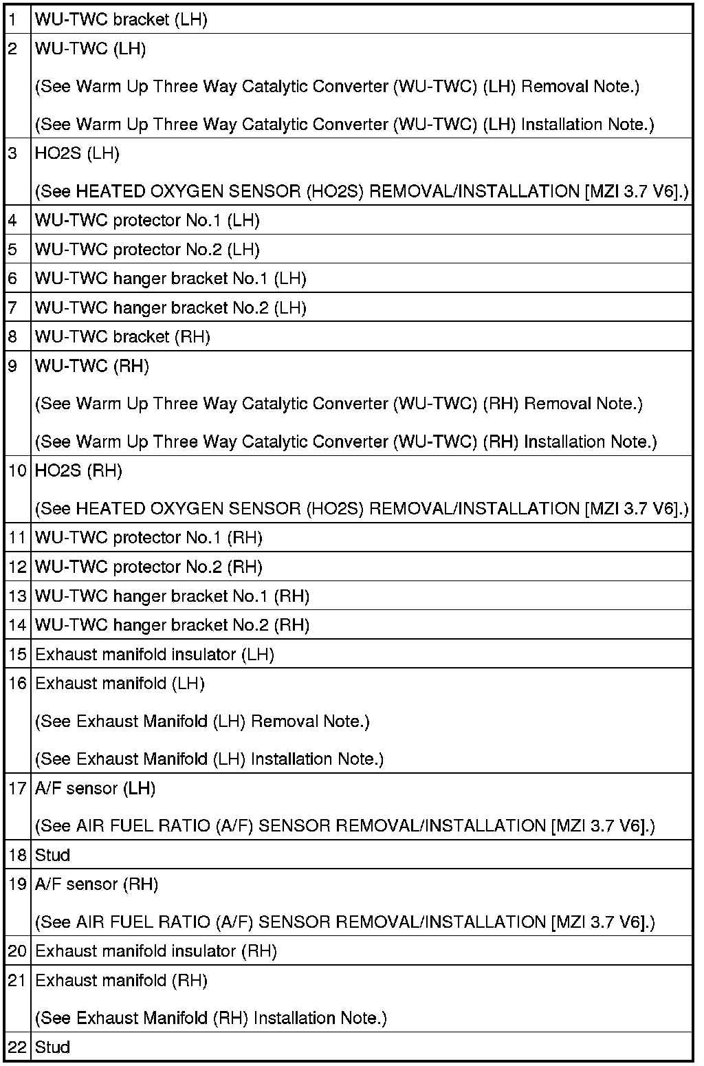 EXHAUST SYSTEM REMOVAL/INSTALLATION [MZI 3.7 V6]