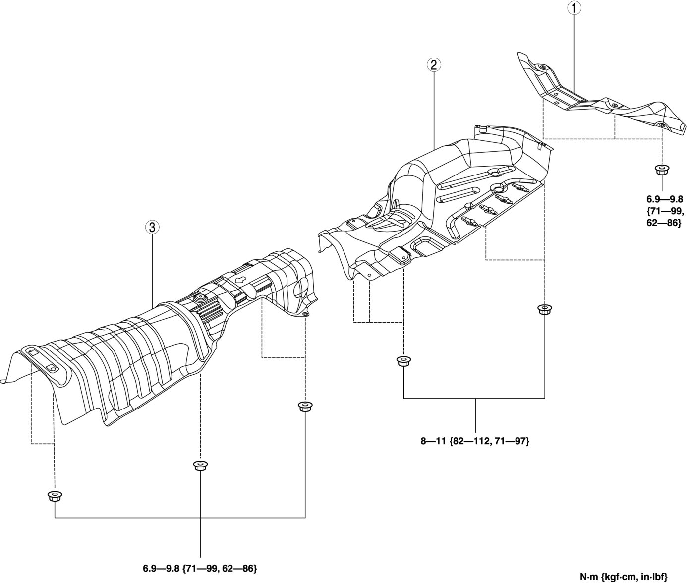1. Remove the exhaust system insulator in the order shown in the figure.
