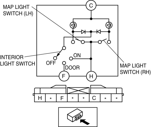 5. Switch the room light switch to the DOOR position and verify that the map light illuminates.