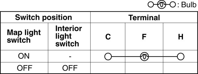 3. Verify that the continuity between the map light terminals is as indicated in the table.