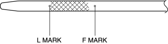 5. Remove the dipstick and verify that the oil level is between the F and L marks on the dipstick.