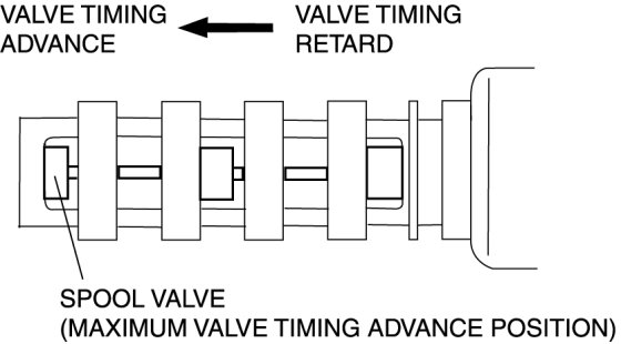 6. Stop applying battery positive voltage and verify that the spool valve returns to the maximum valve timing retard position.