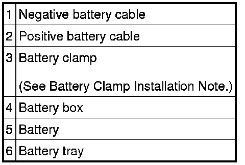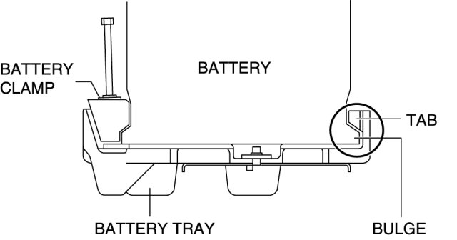 Install the battery clamp with the lower bulge of the battery set against the battery tray tab.
