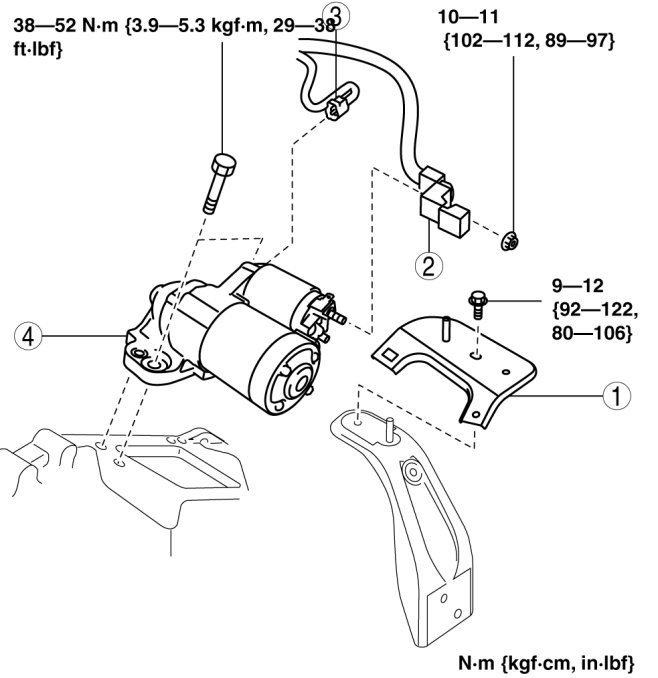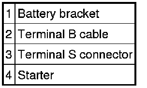 - When the battery cables are connected, touching the vehicle body with starter terminal B will generate sparks. This can cause personal injury, fire, and damage to the electrical components. Always disconnect the negative battery cable before performing the following operation.