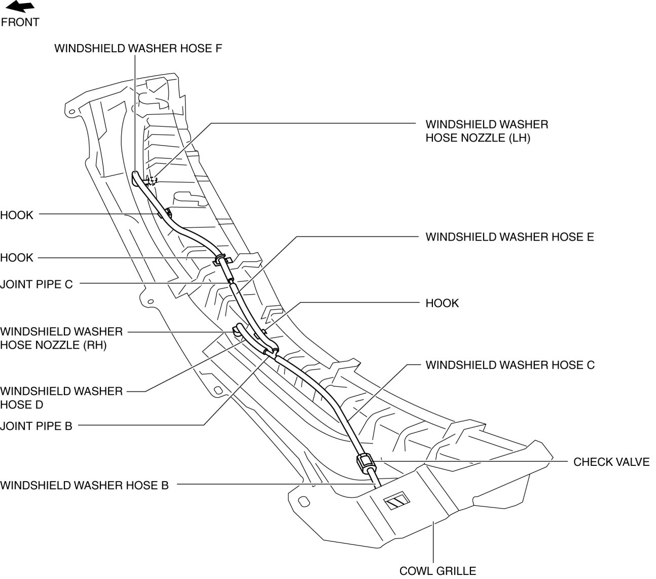 WINDSHIELD WASHER HOSE REMOVAL/INSTALLATION