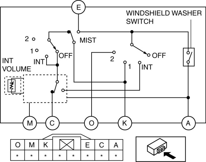 - If the continuity is not as indicated in the table, or if the resistance is not within the specification, replace the windshield wiper and washer switch. Service and Repair