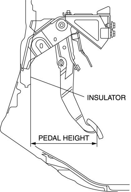 1. Measure the distance from the center of the upper surface of the pedal pad to the insulator and verify that it is as specified.