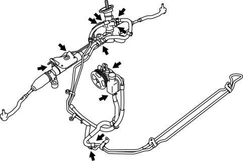 - If fluid leakage is found, replace related pipe or hose.